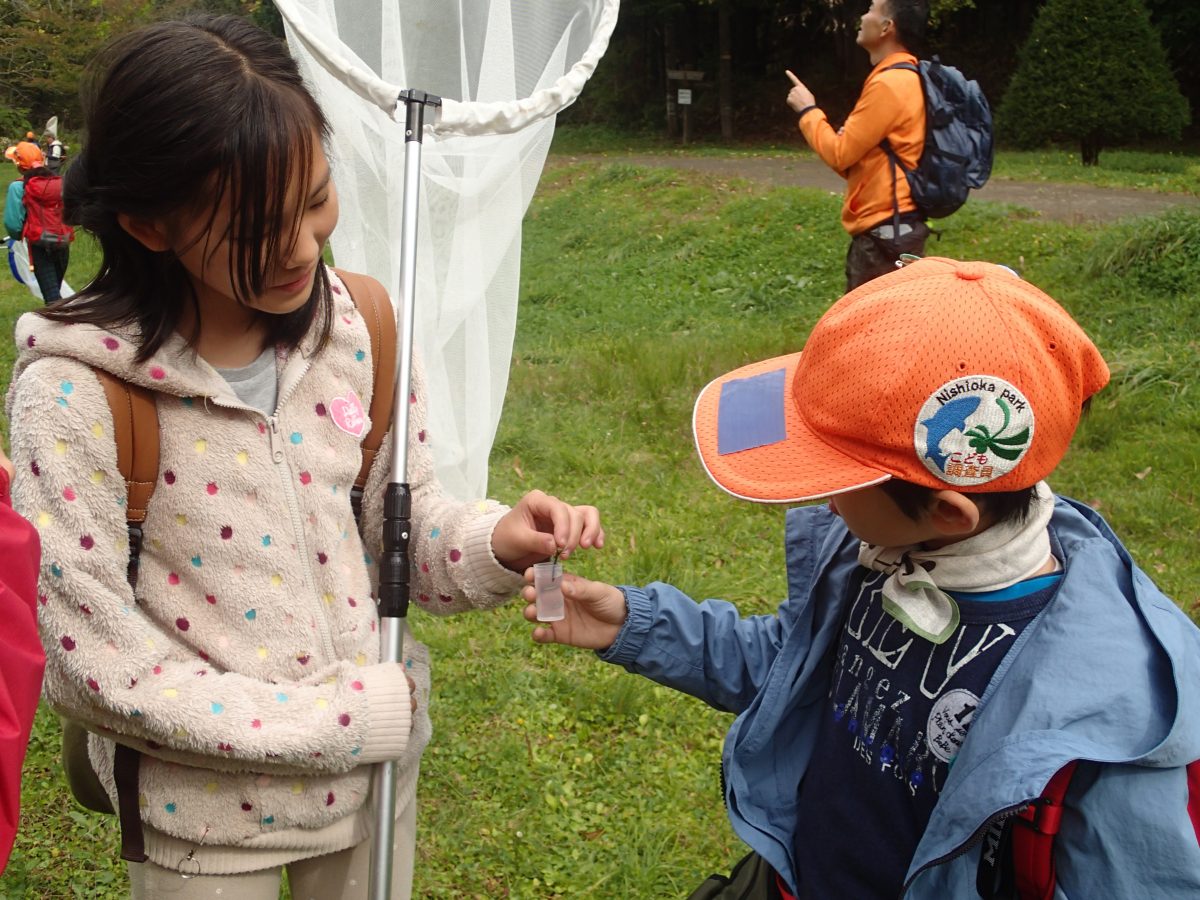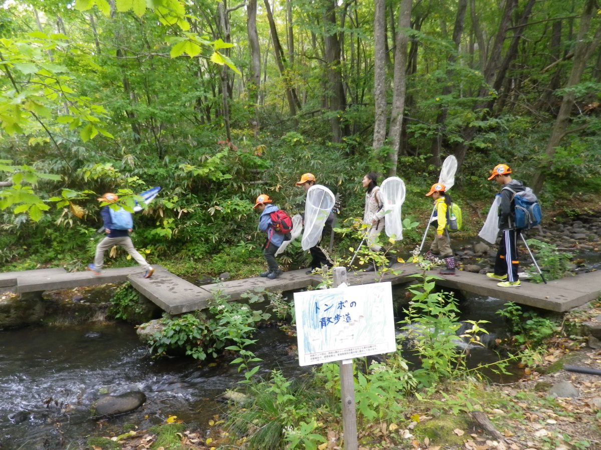 10月8日,野外調査は今日が最後です。ここ西岡公園の木々,草花はすっかり秋のたたずまい。ヤンマ団の団員は,公園内のトンボの種類を通しても季節の移り変わりを感じ取ることができますね。木の実降る道を駆け抜ける団員たち,頼もしいです。こんな貴重な体験ができる場をいつまでも大事にしたいです。