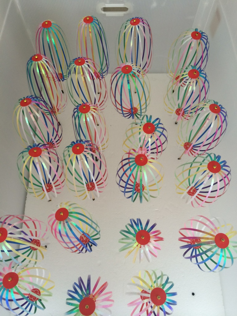先日施設にお伺いしたときにも、くるくるレインボーの要ともいえるオーロラテープを切る作業をやっていました。