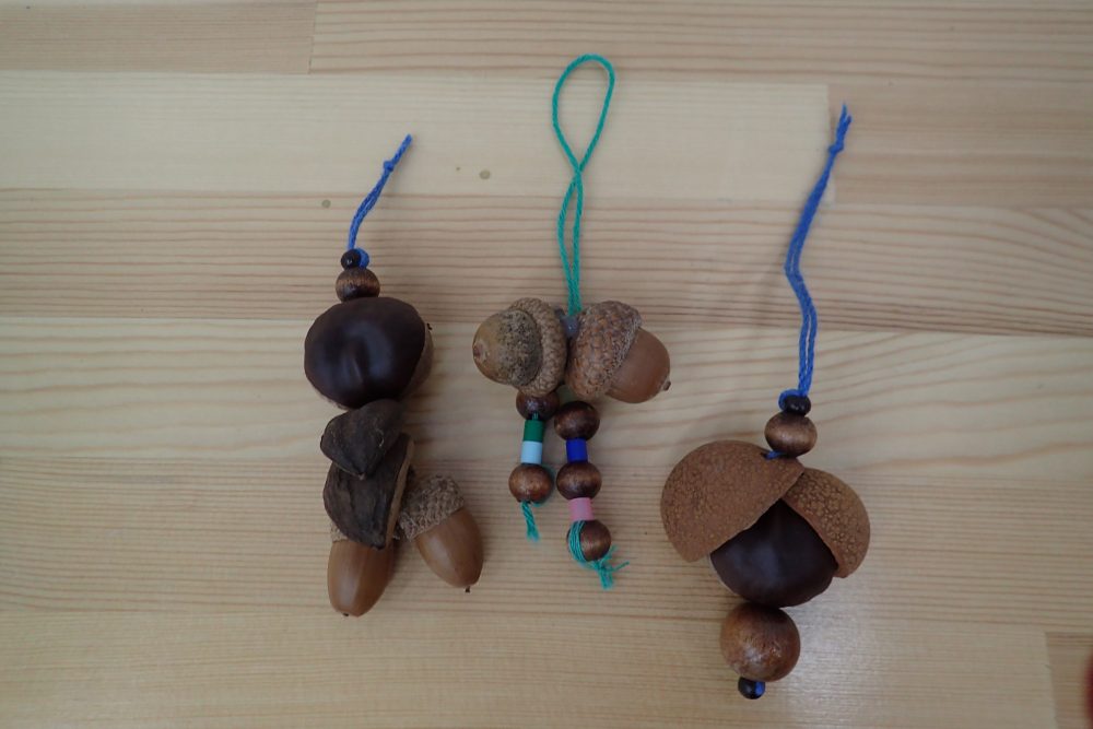 ドングリや松ぼっくり、木製のビーズなどもご用意してます。