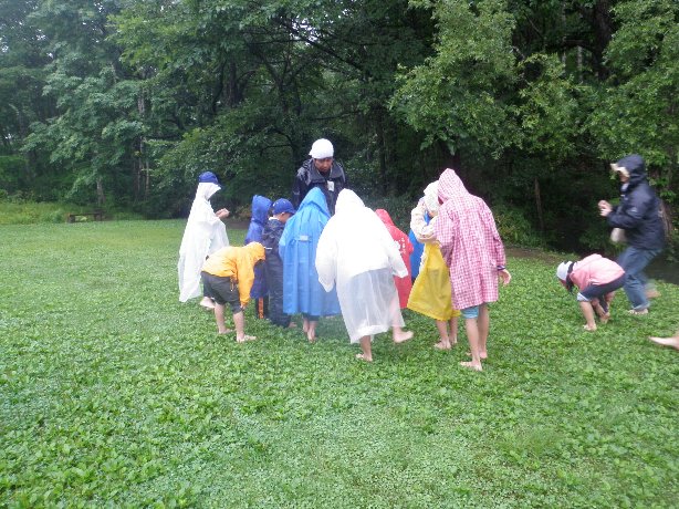 今日は夏のイベント「宝探しハイキング」の日でした。数々のゲームをクリアしながら暗号文を受け取り、受け取った暗号文を解読していくというとても楽しいイベントでした。しかし、残念ながら朝から雨が降ったり止んだりで、いまいちぱっとしない天気でしたが、子どもたちはお構いなしにとても楽しそうに参加していました。