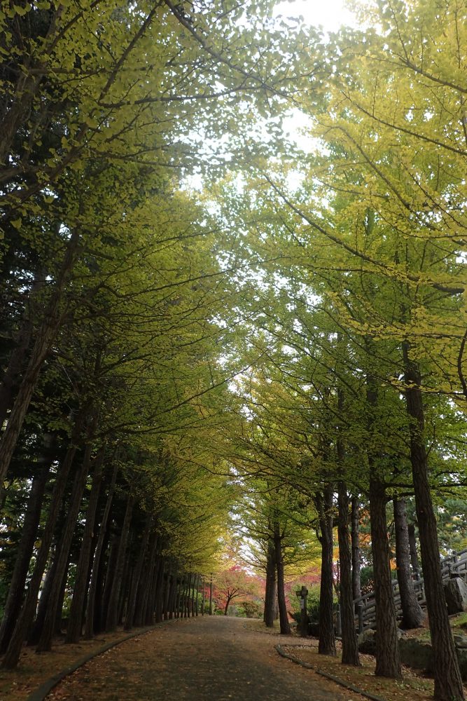 まずは管理事務所に近い、イチョウ並木