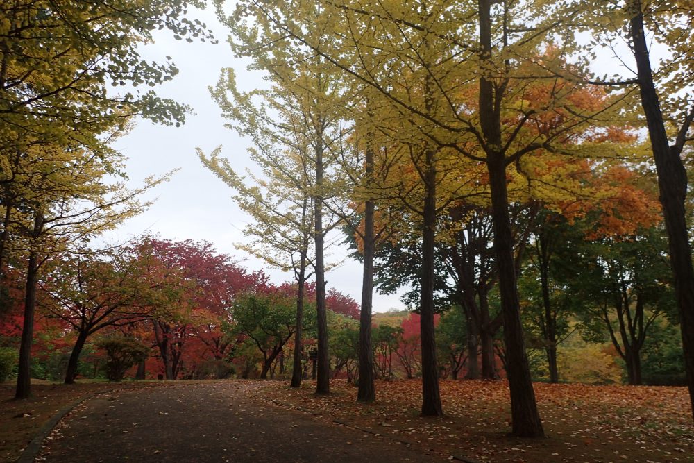 イチョウ並木を抜けると花木広場の木々が紅葉しています。