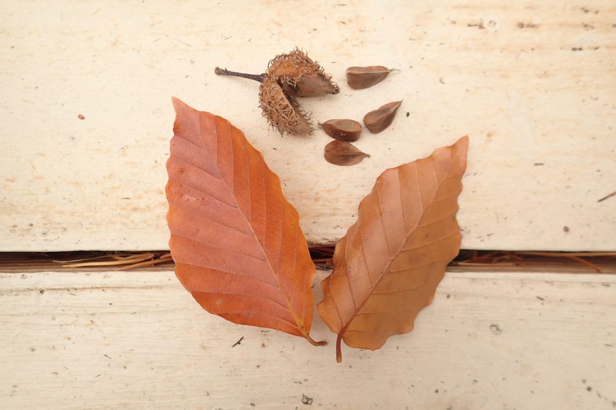 ブナの葉は半光沢な質感がとても印象的で、冬になっても頭を垂れたように枝に残る葉が多いので、紅葉した色合いを長く楽しめる樹種だったりします。