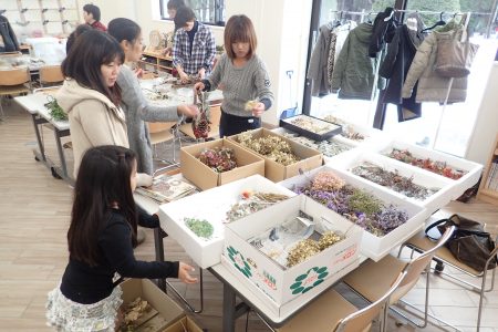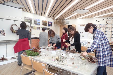 そんなお世話になっているボランティアさん同士の交流の場として、みんなでクリスマスリースを作る会を開きました。