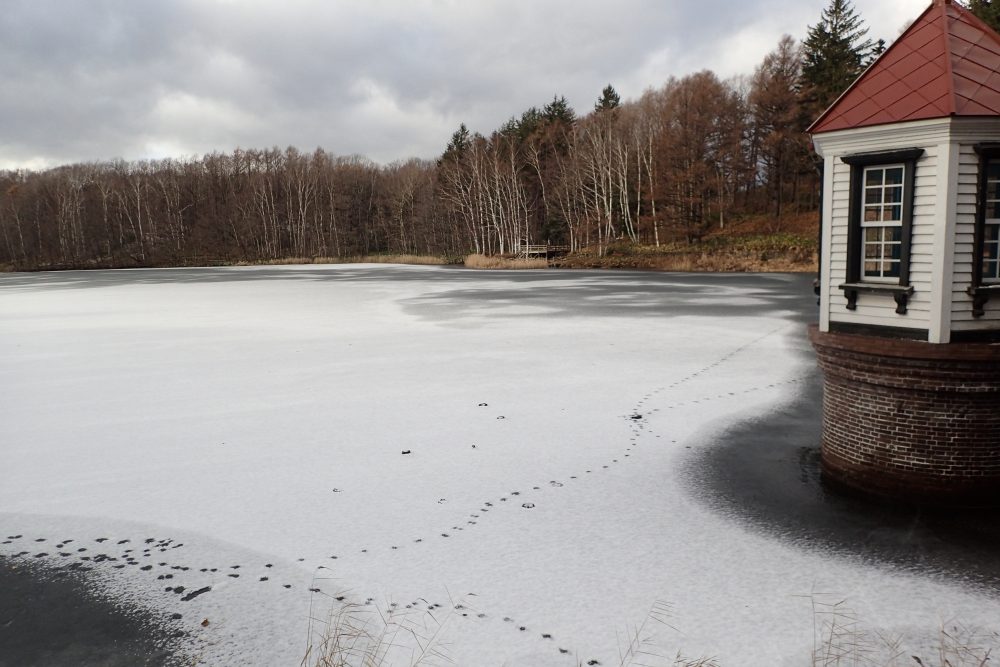結氷したといっても、氷の厚さはまだまだ薄いはず。