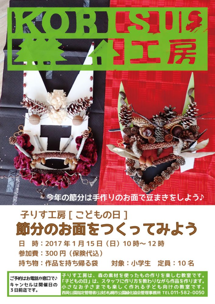 1月の子りす工房・こどもの日のテーマは「オニのお面をつくろう」です。