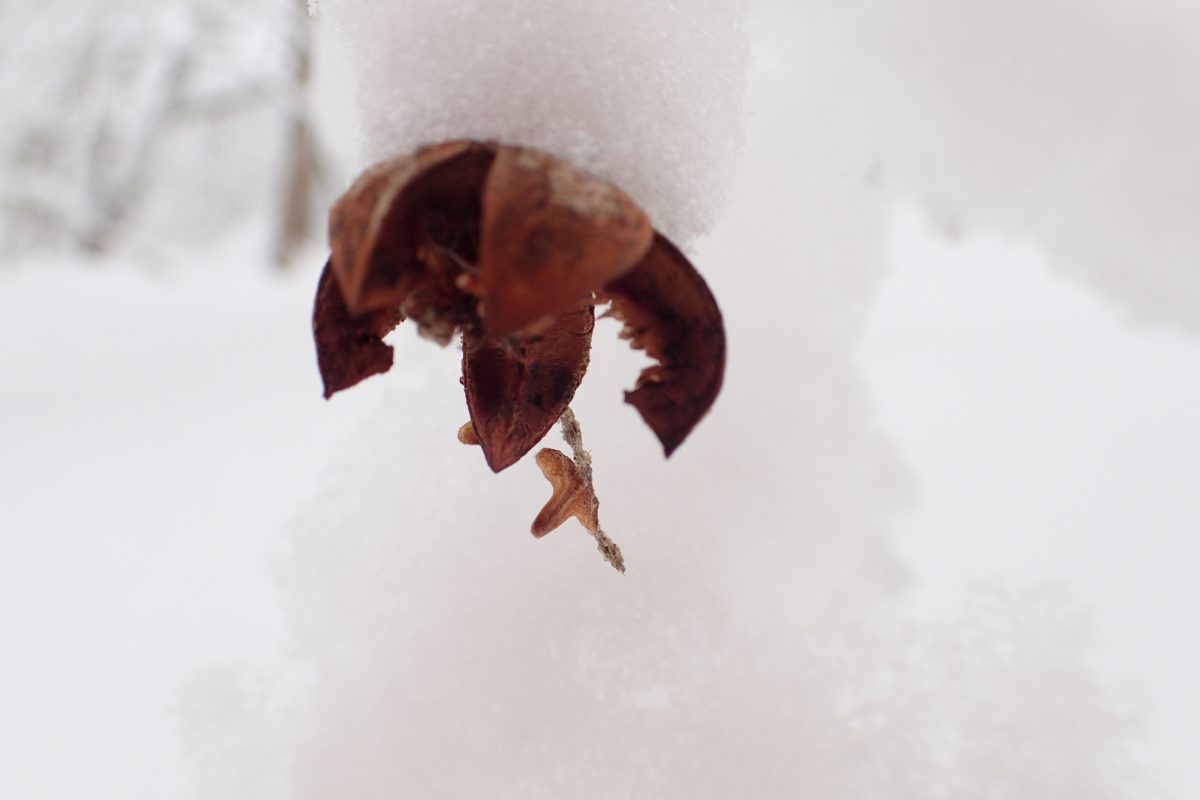 秋の見所のひとつでもあるツリバナにも雪が積もり