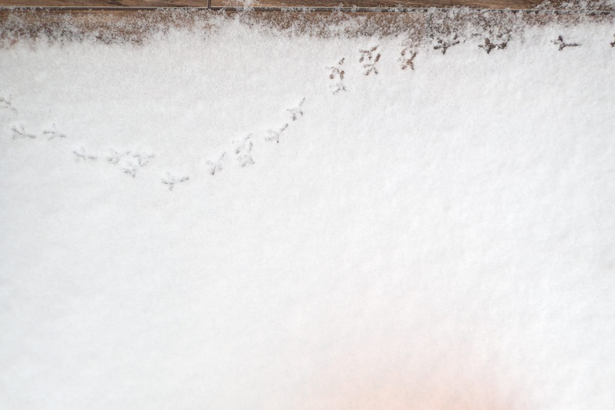 ハクセキレイでしょうか、テクテク歩いた足跡が残されていました。