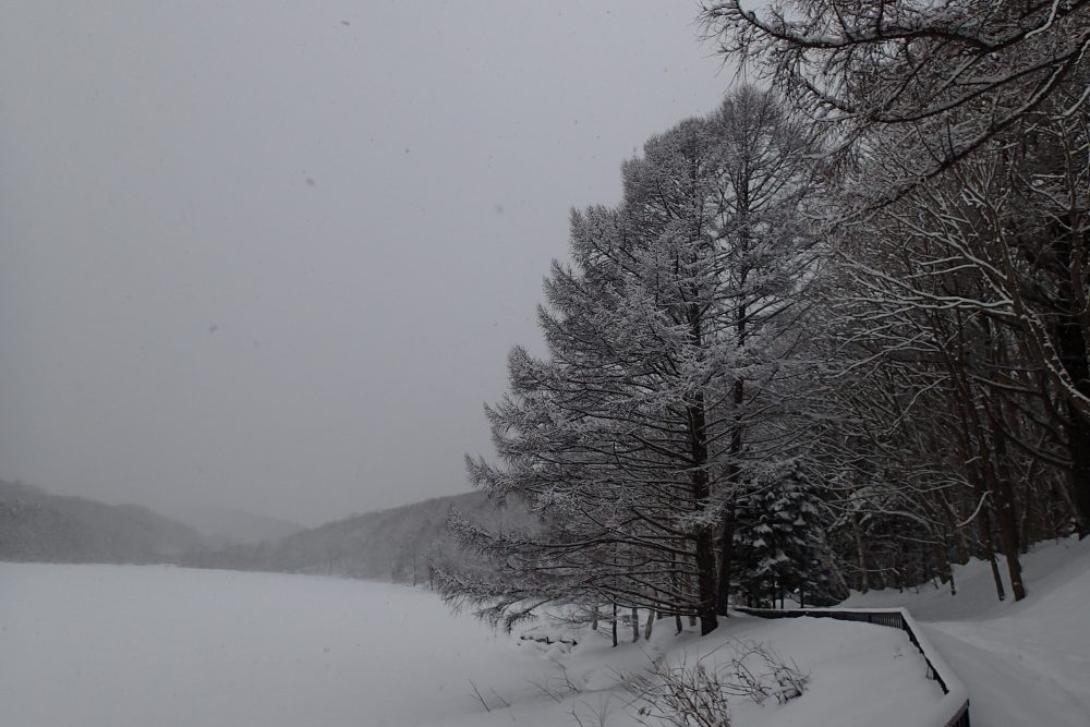 昨日雨が降ったので、凍ってしまった場所もあり、その上に雪が降り積もっている状態です。散策の際は、足元にお気をつけてくださいね。