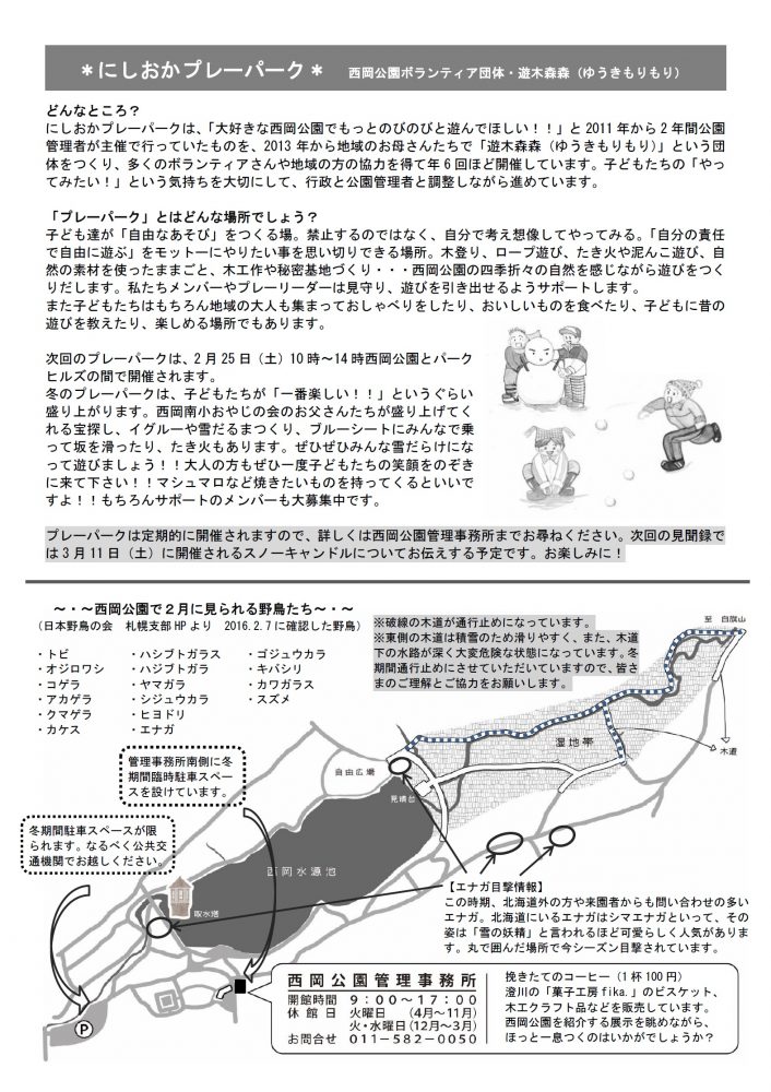 裏面では西岡公園ボランティア団体の遊木森森(ゆうきもりもり)からにしおかプレーパークについてお伝えしています。