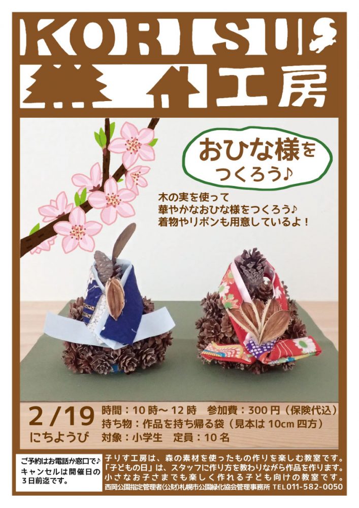 2月の子りす工房・こどもの日のテーマは「おひな様をつくろう♪」です。