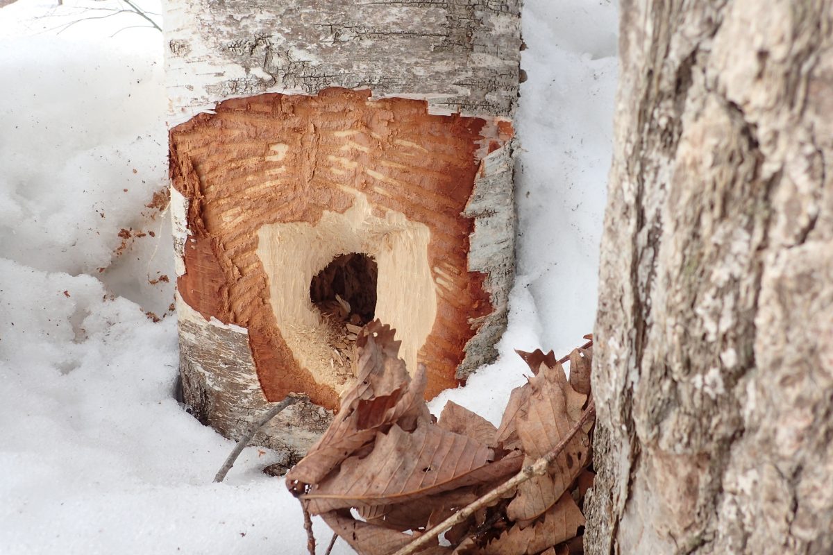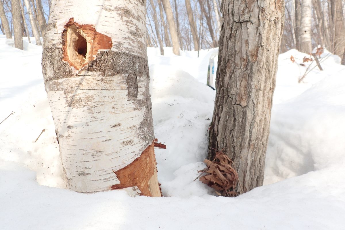 雪面の傍で、キツネやテンが侵入できる高さなので動物の巣には不向きですが、