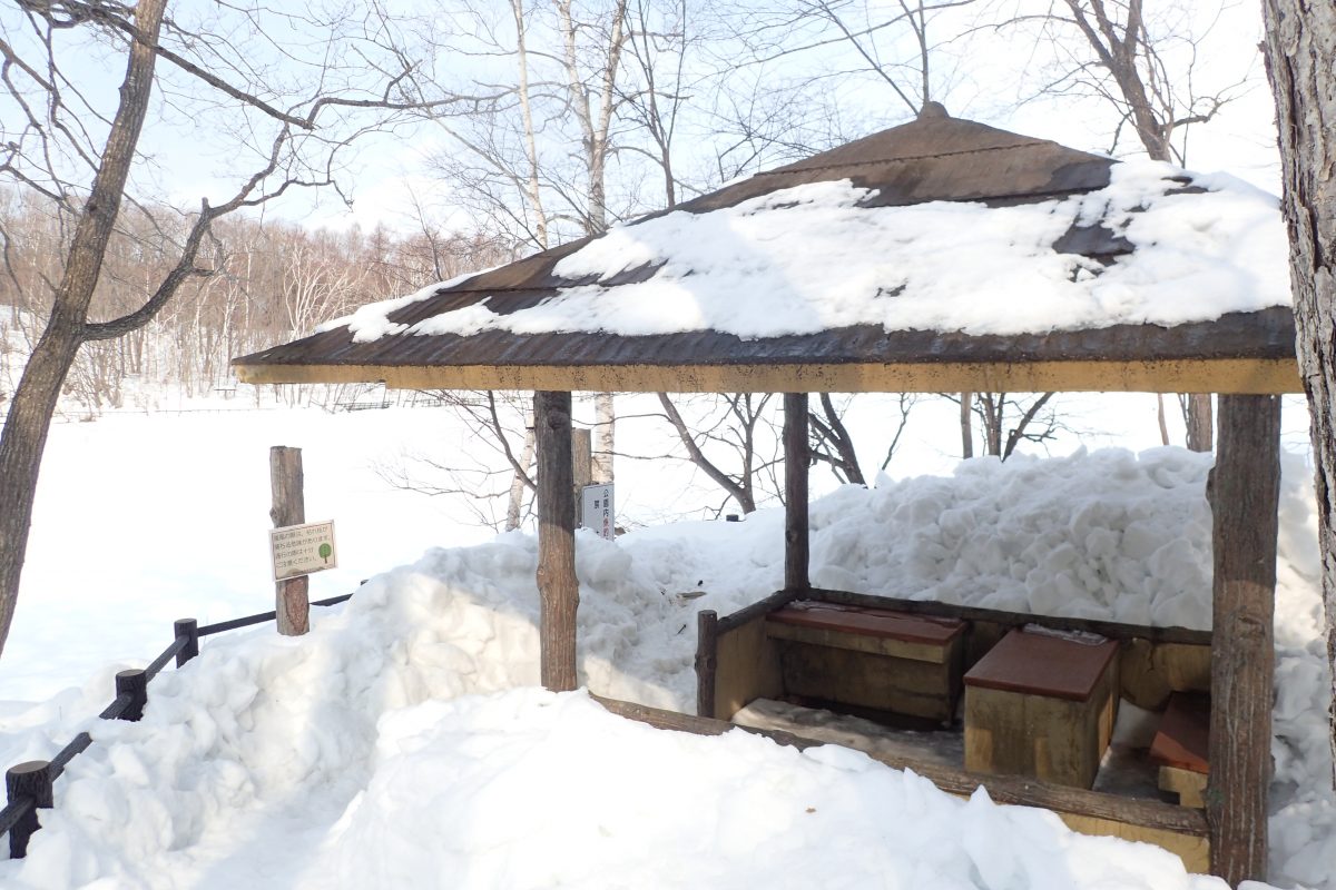 最近は下ろした雪が風防になって、良い休憩スポットになっているようです。