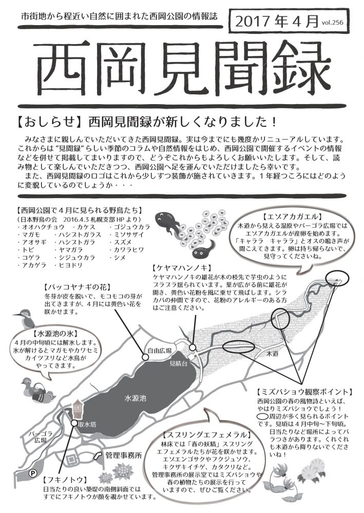 これまで通り、季節のコラムや自然情報だけではなく、西岡公園で開催されるイベントや活動など併せて掲載していきます。