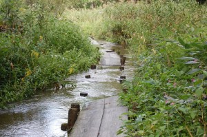 一昨日からの大雨で、木道の一部が冠水しています。 昨日の昼頃は、それほど水量も増えていなかったのに、今日の午後 行ったら、木道スレスレまで水位が上がっていました。 冠水している木道は、ただいま通行止めにしています。水が引き次第、 通行可能になると思いますので、皆様のご協力をお願いいたします。