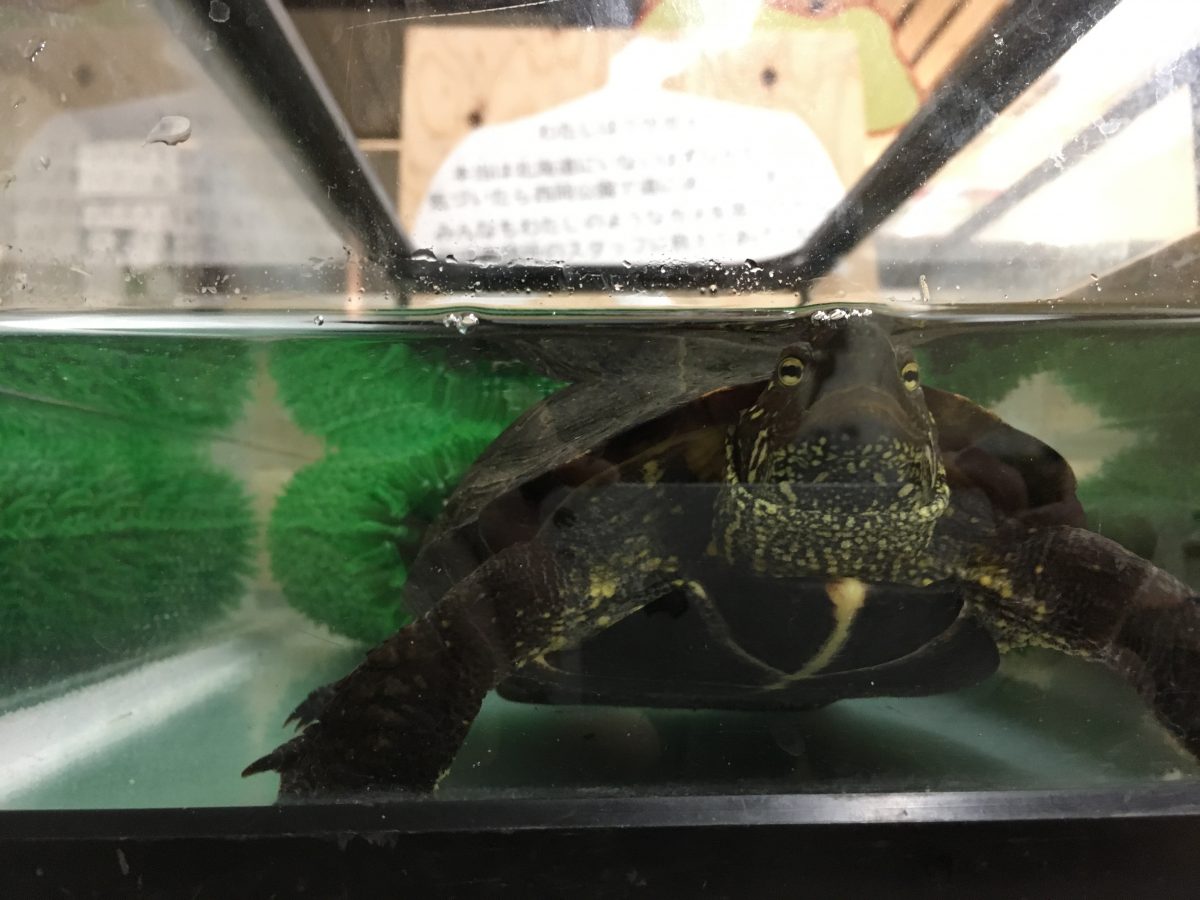 本来、北海道にはいないはずのカメですが、家で飼えなくなった子たちが放されるケースがあるようで、西岡公園でも稀に捕獲されます。