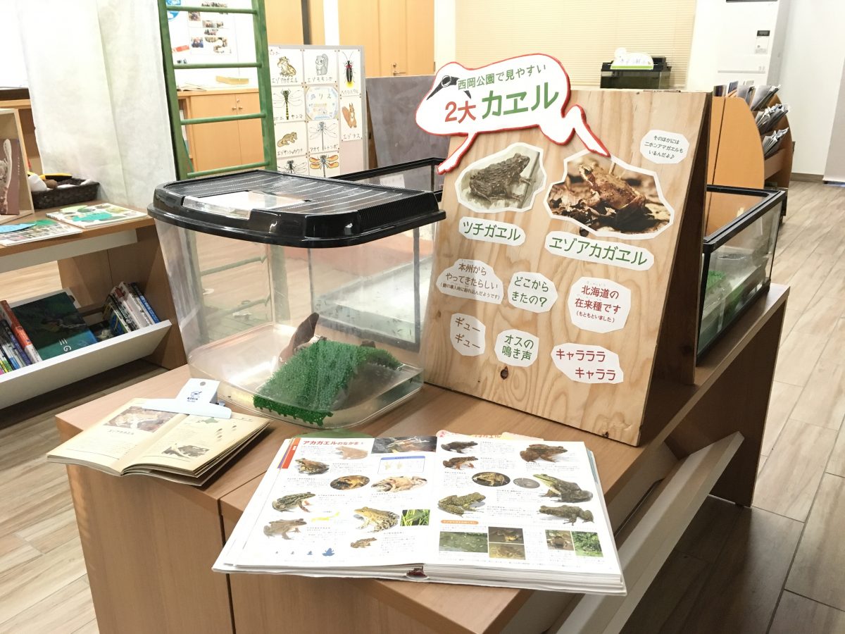「西岡公園で見つけやすい2大カエル」を展示中です♪