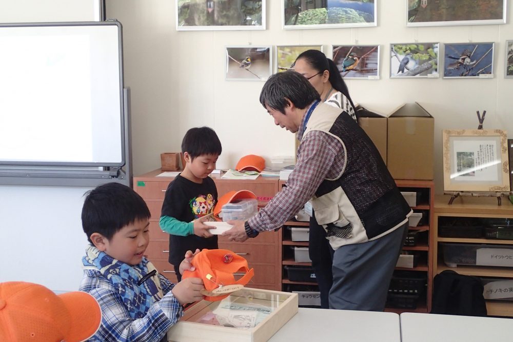新団員には調査員帽子や名札、野帳、そして標本箱などたくさんの道具が渡されました。みなさん1年間大切に使ってくださいね。