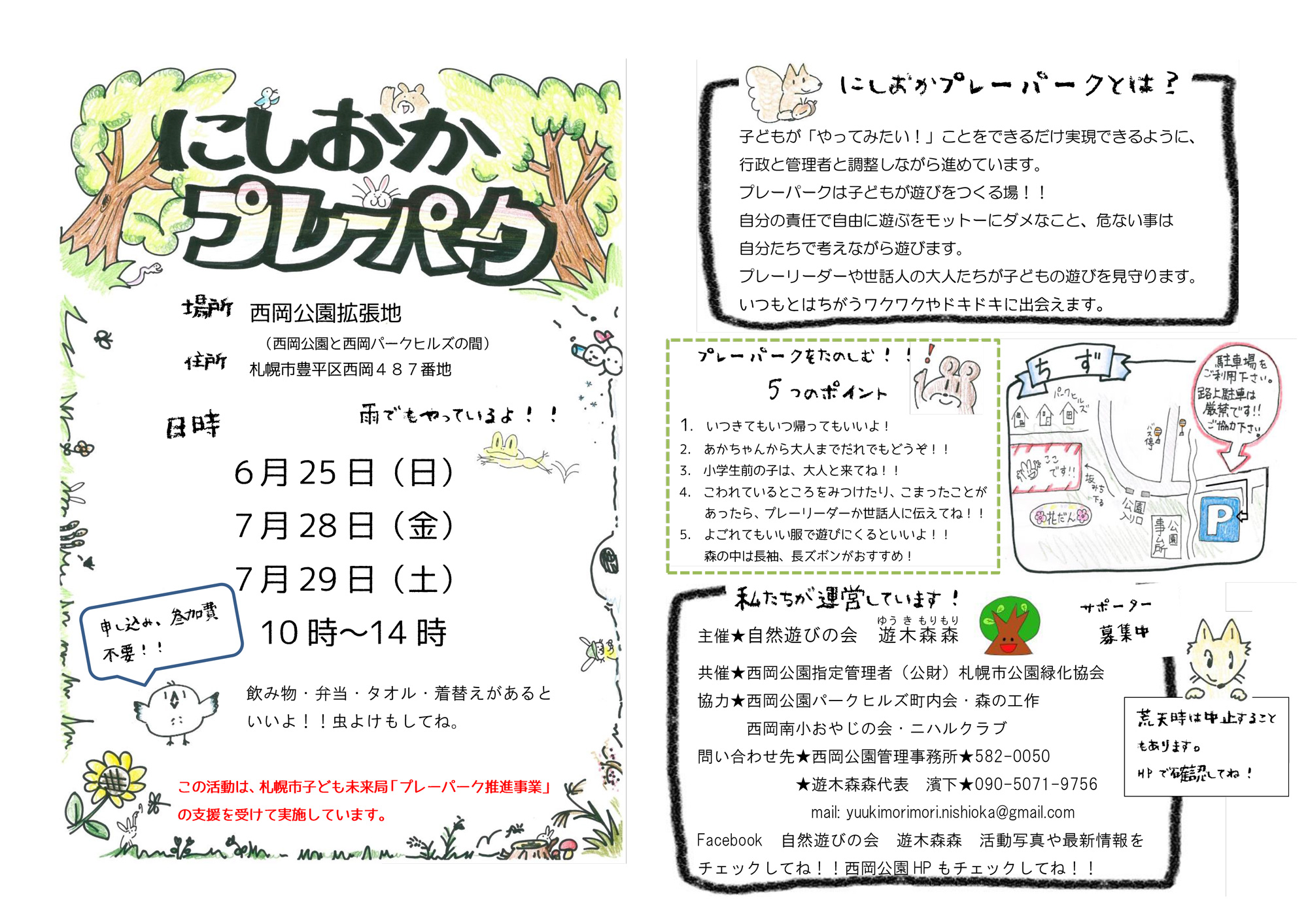 西岡公園管理事務所、町内会などが協力してプレーパークを運営しています。