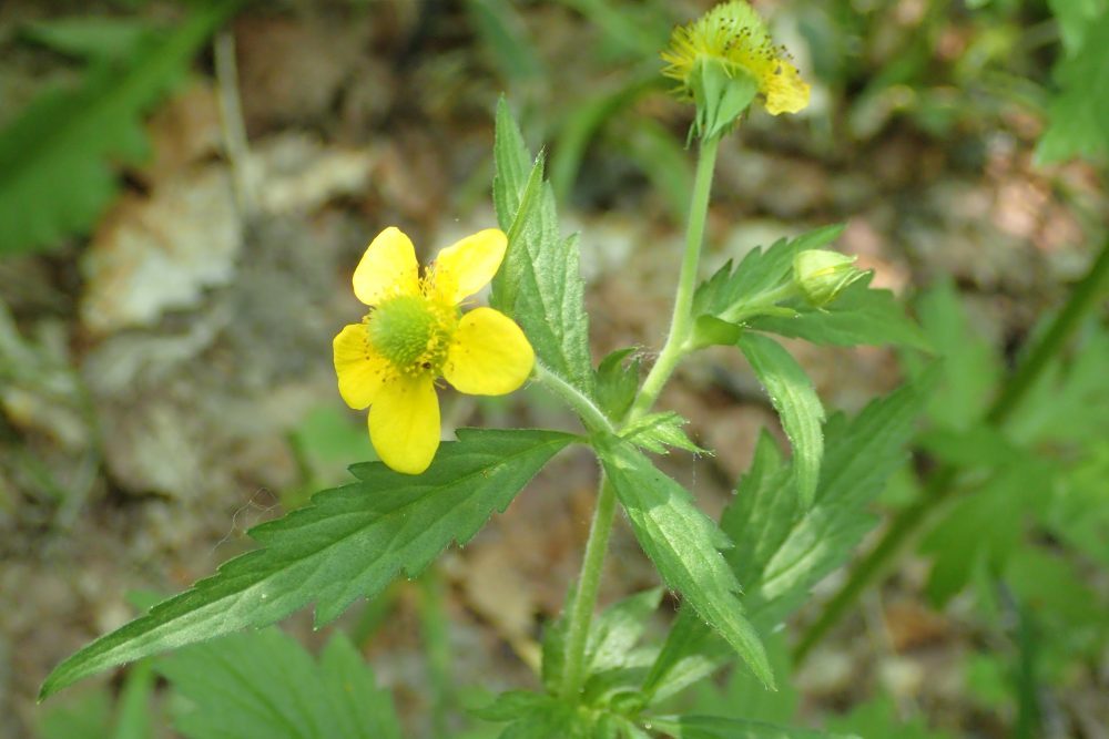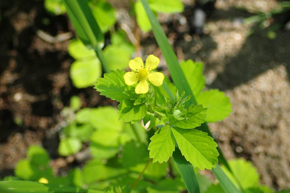 小さめですが、あちこちにまとまって咲いている「ヒメヘビイチゴ」