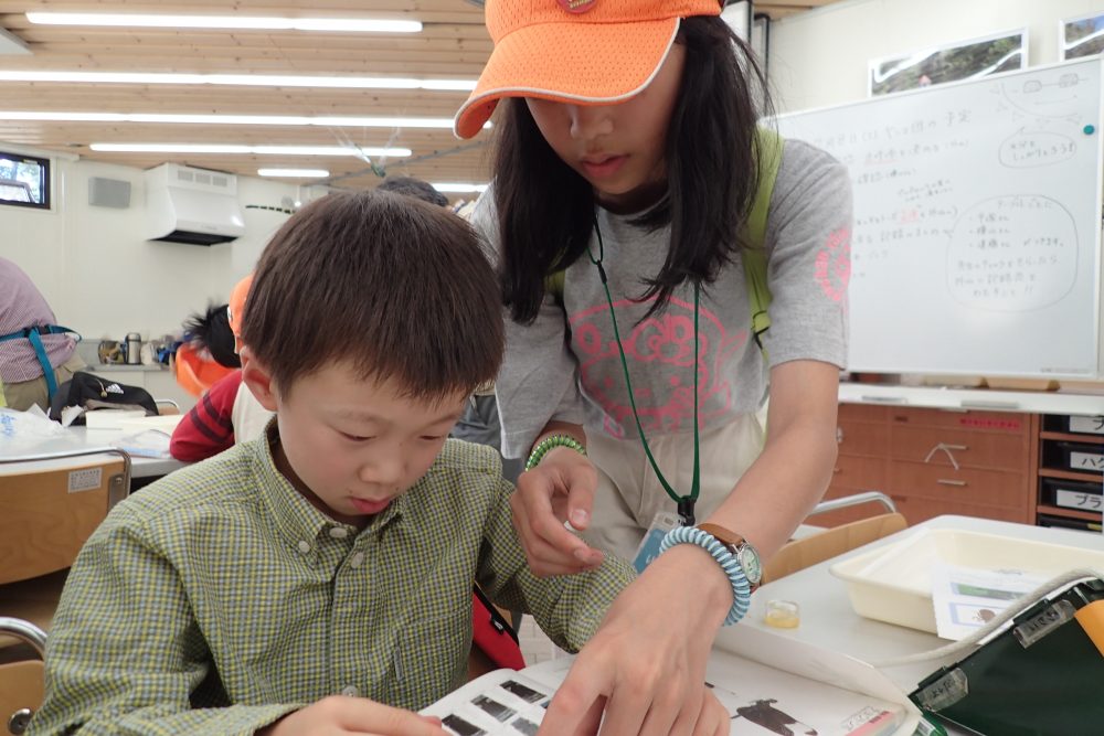 午後からの標本作りでは、さらに経験を積んだ中学生スタッフが新団員のサポートをしてくれます。