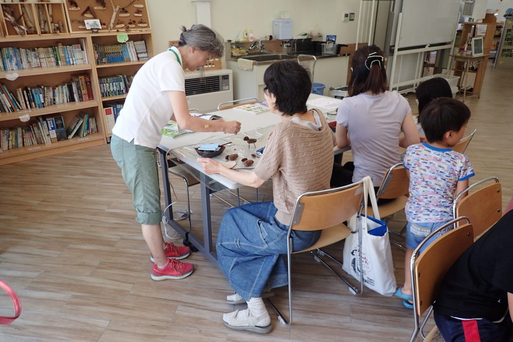 そんな時でも大丈夫!森の工作のボランティアスタッフが作った見本を見せてくれたり、作り方のコツなどアドバイスをしてくれます。
