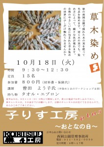 いつもの子りす工房にプラスをして、草木染めの講座を行います。 今回は、西岡公園の木の実を使い、毛糸を染めてみましょう。 自然のやさしい色に包まれた草木染めの世界に、少しだけ触れてみませんか?