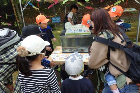 西岡ヤンマ団と西岡さかな組は、それぞれに赤とんぼと水生生物の生態展示コーナーで力を発揮!