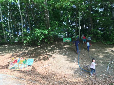 ロープを伝っていった先には、木漏れ陽の空間が広がり、そのなかでゆったり過ごすプレーパークはとても気持ちの良い場所になっていました♪