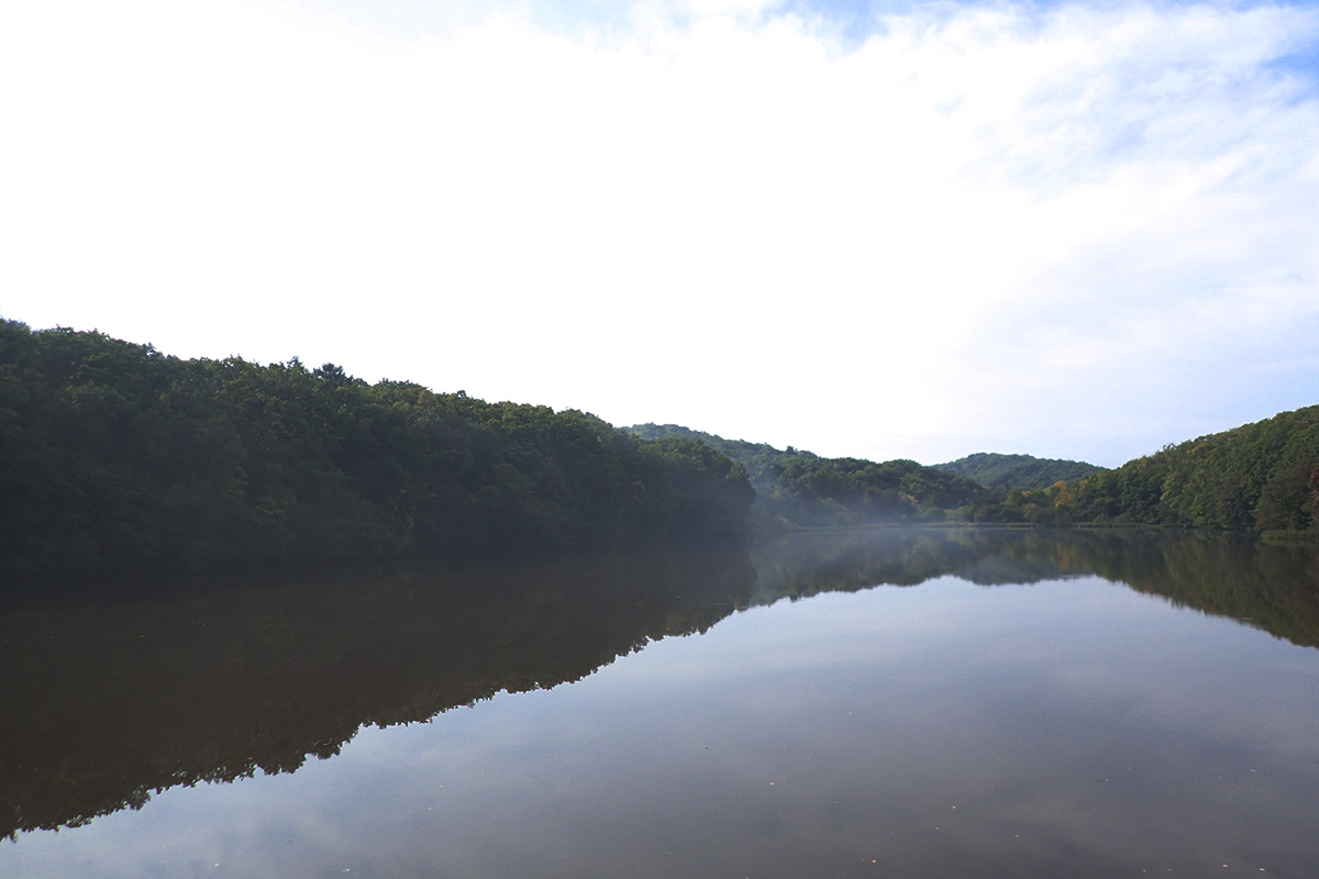 台風が去った西岡公園は、朝靄がかかり、風もなく、すこし幻想的な雰囲気になっていました。