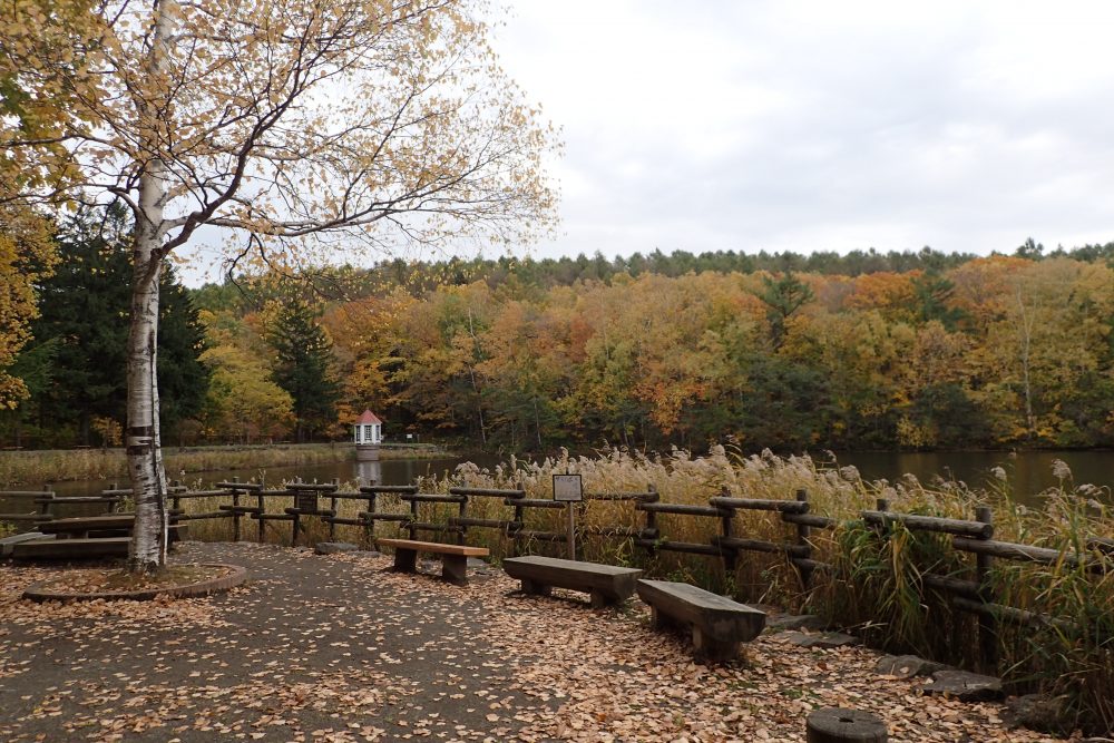 水源池の紅葉もずいぶんと進んできました。水源池が結氷するまでは水鳥の姿も楽しめます。