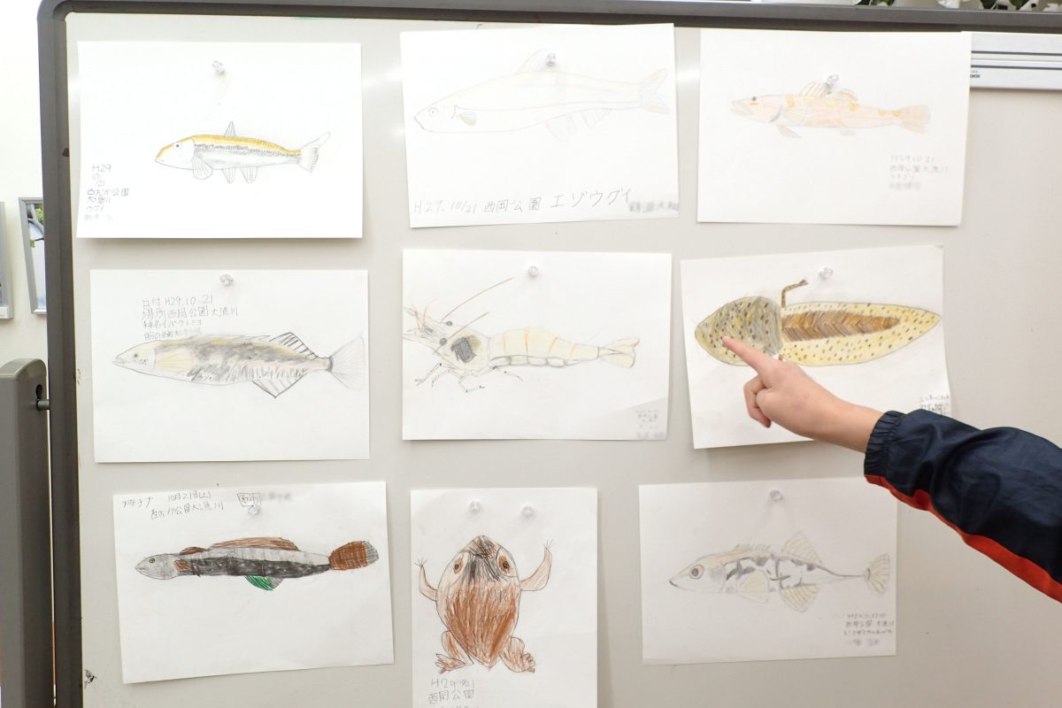 さて西岡さかな組では、捕獲した魚類を自分たちでスケッチに残しています。