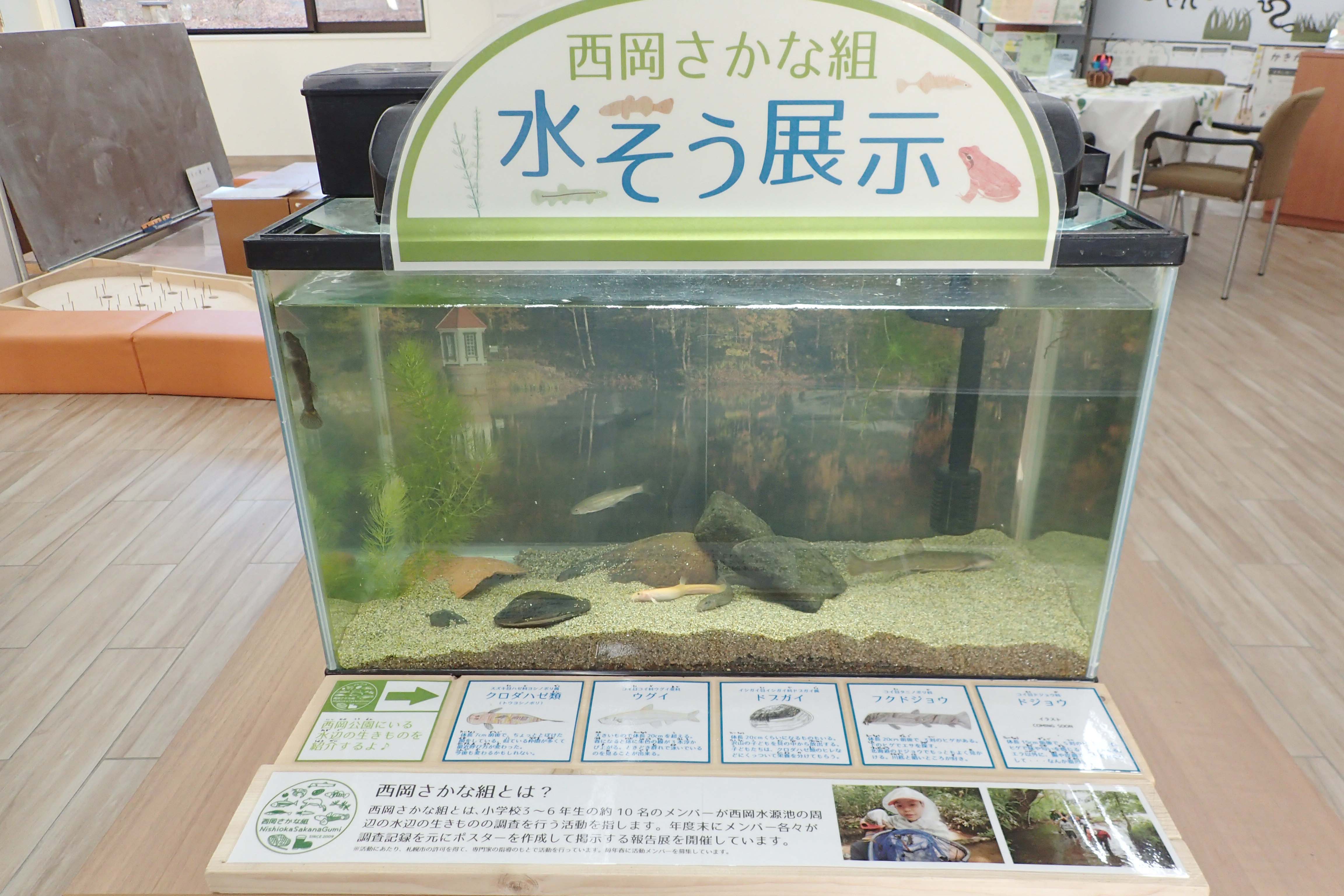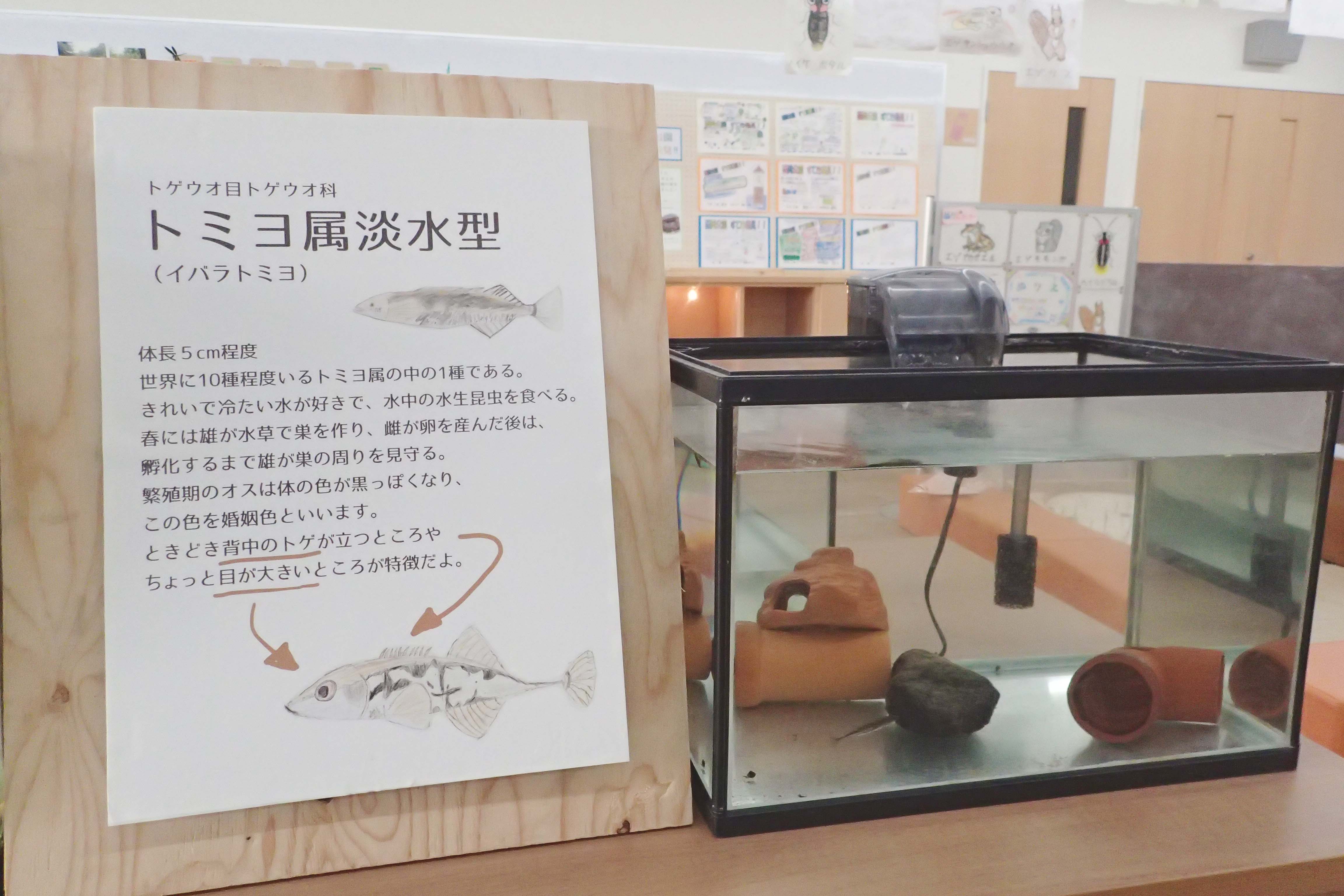 さて、この日に採集した生き物やスケッチの一部を水槽展示に組み込んでみました。