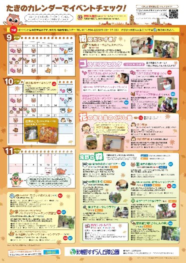 滝のすずらん丘陵公園から秋のお便りが届きました。秋のすずらん公園は楽しそうなイベントがいっぱいです!!