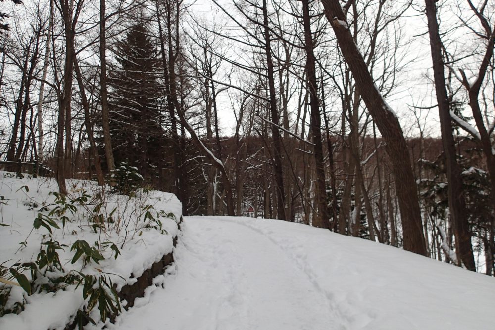 最近まとまった雪が降っていないせいか、園内の散策路の雪はしっかりと踏み固められいます。