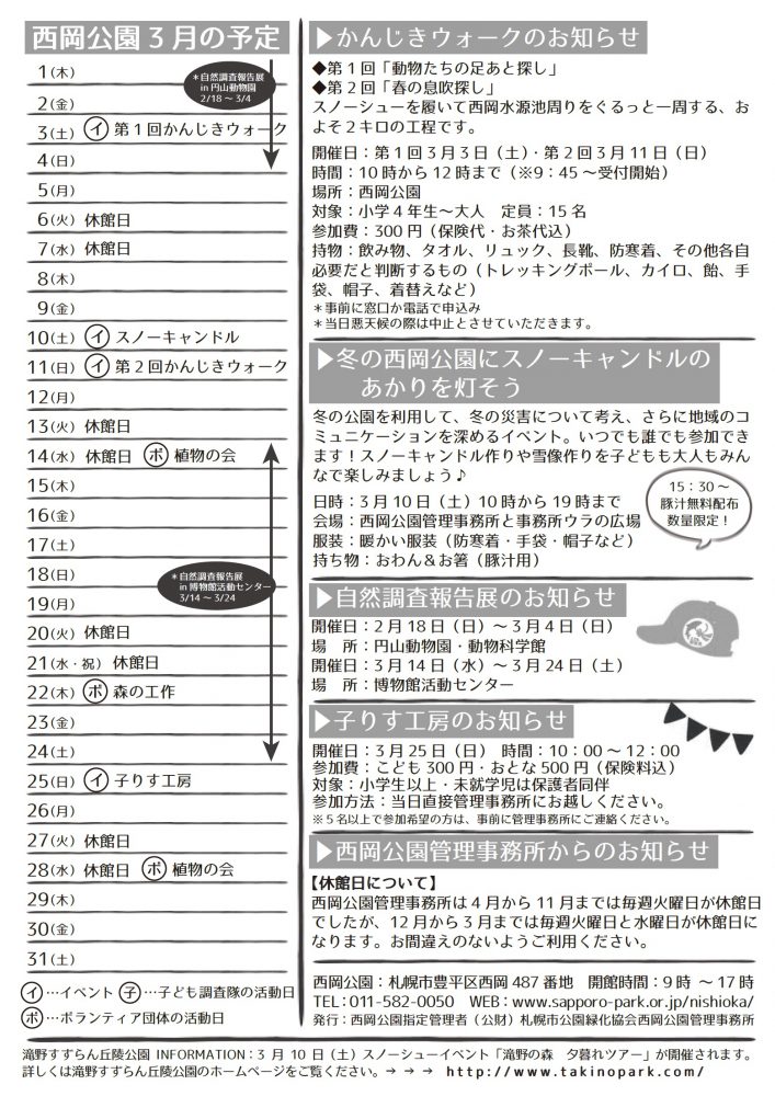 裏面では子どもたちによる調査隊の報告展のお知らせや、かんじきウォーク、スノーキャンドルなどのイベントについてお伝えしています。