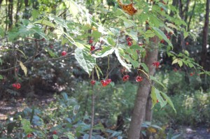 ツリバナの実は、最初は丸い実ですが、秋になるとパックリ割れて、