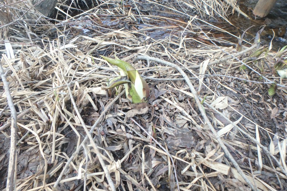 さて、西岡公園の春を代表する植物!ミズバショウですが現在は↓こんな感じです。