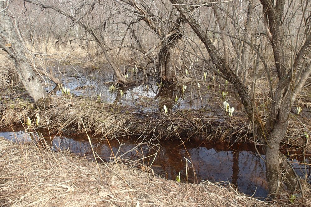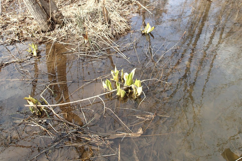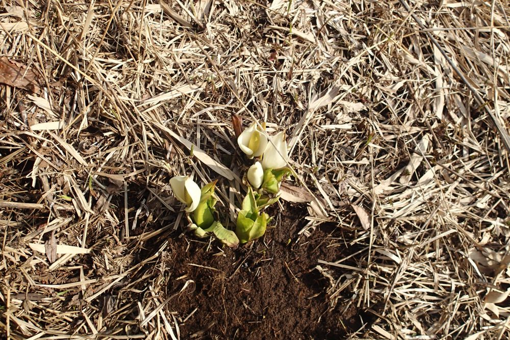 水源池の氷は解けましたが、園内にはまだ雪の残っている所もみられ、