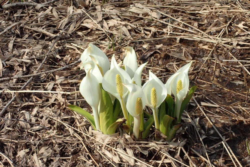 ここ2、3日の暖かさでミズバショウも見頃をむかえました。場所によってはこれから見頃をむかえます。