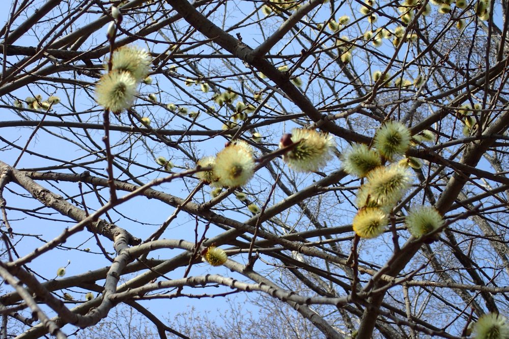 バッコヤナギの雄花ですがもう盛りが過ぎて黄色い花の部分が落ちてしまいました。バッコヤナギ、漢字名は山猫柳です。
