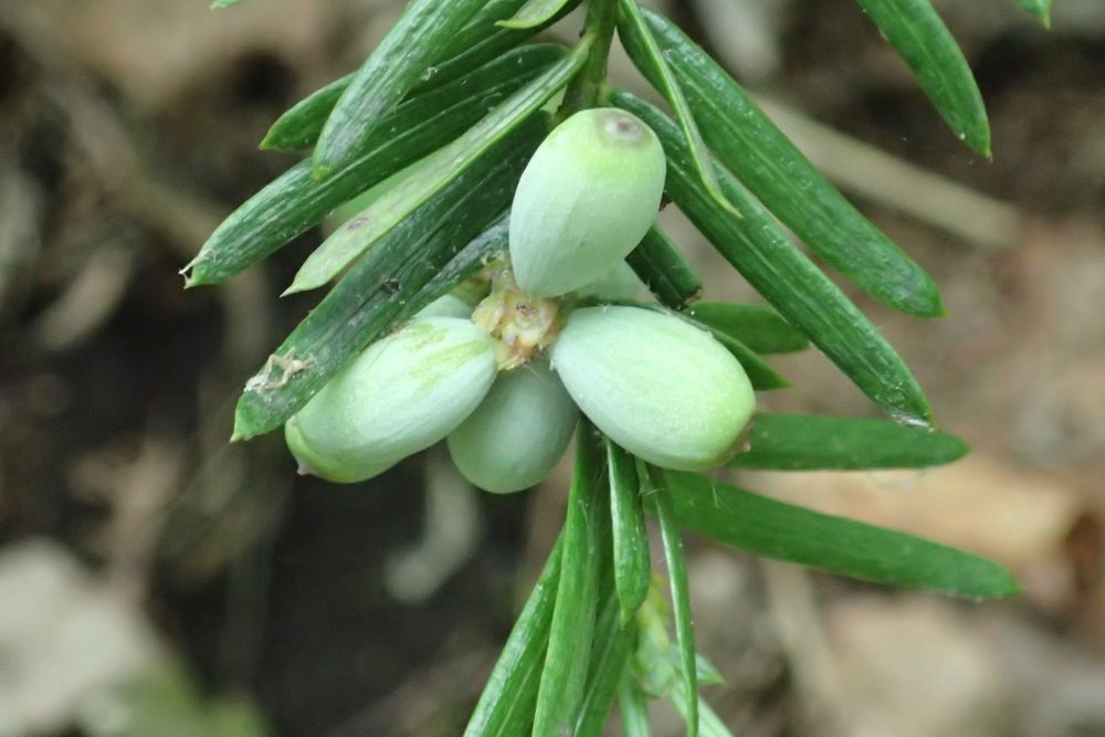 ハイイヌガヤの実です。今は淡い緑色ですが、10月頃紫色から赤色へ色づき始めます。