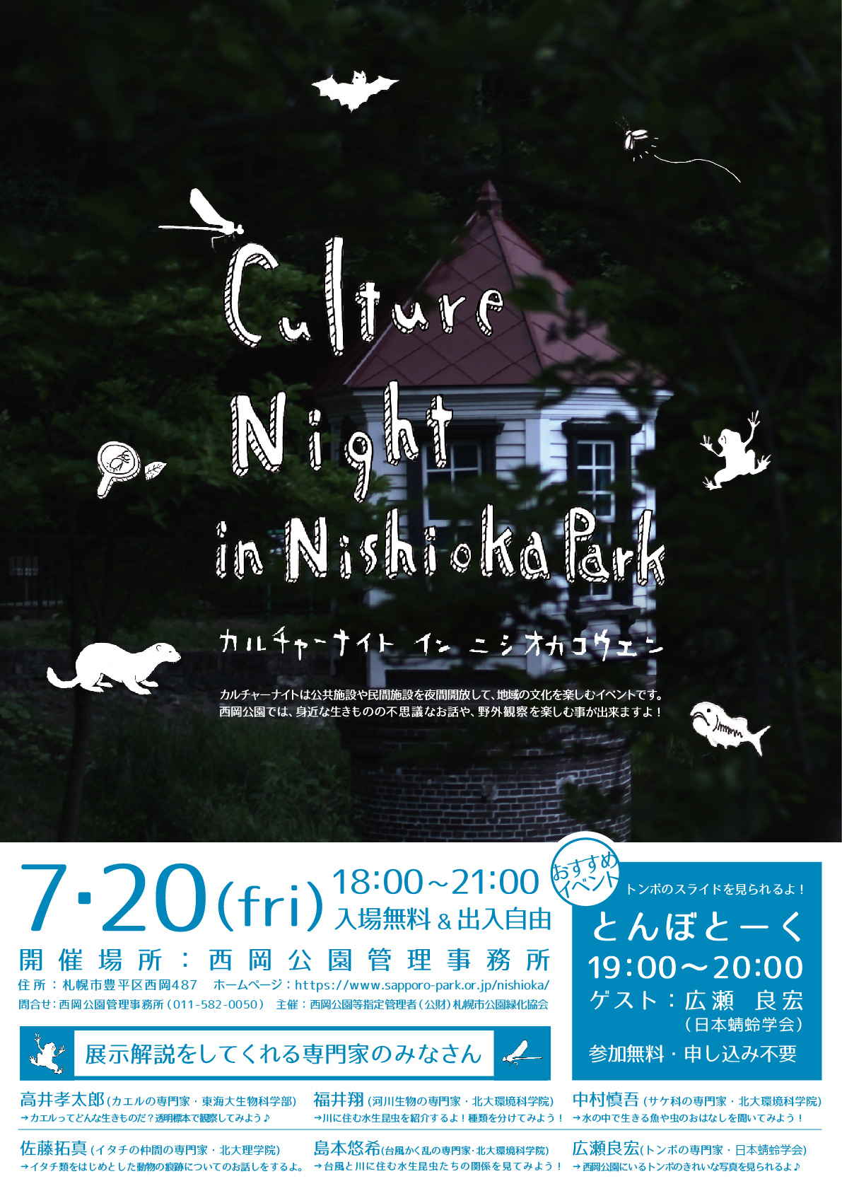 色々な生きもの好きが集まって、夜の西岡公園で不思議な一夜を過ごしませんか?