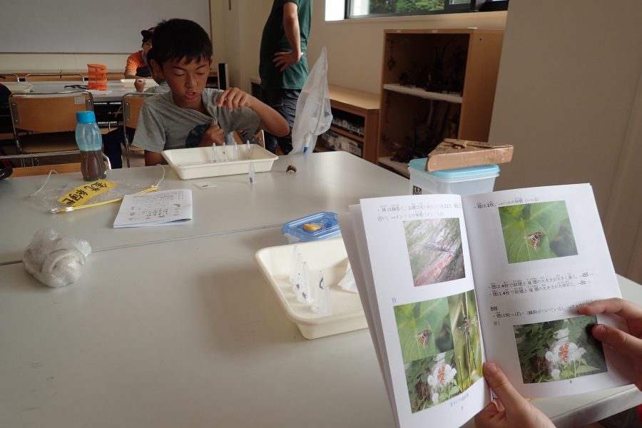 その後、先生が用意してくれた虫の検索表を使って自分が採集した虫を検索♪