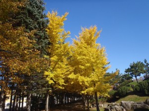 管理事務所前の広場に植えてあるイチョウの樹が綺麗に黄葉していました。