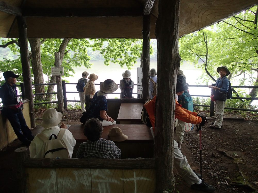 残念ながら途中から雨が降ってきました。あずまやで一休みしながら池のマガモを