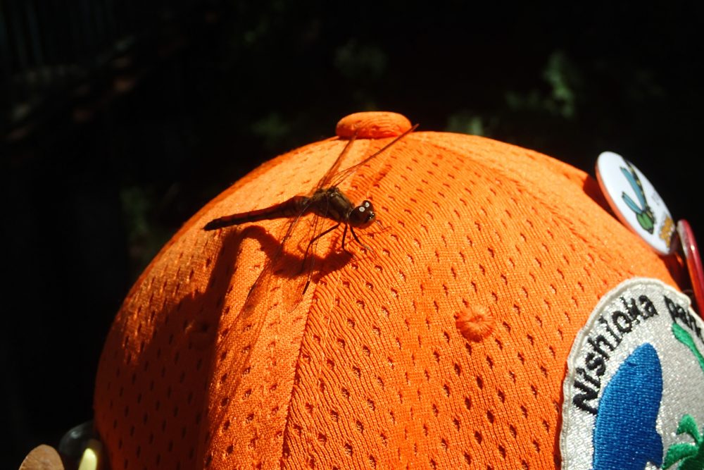 活動中も網を振る前に、次々と団員に止まるトンボが見られました。