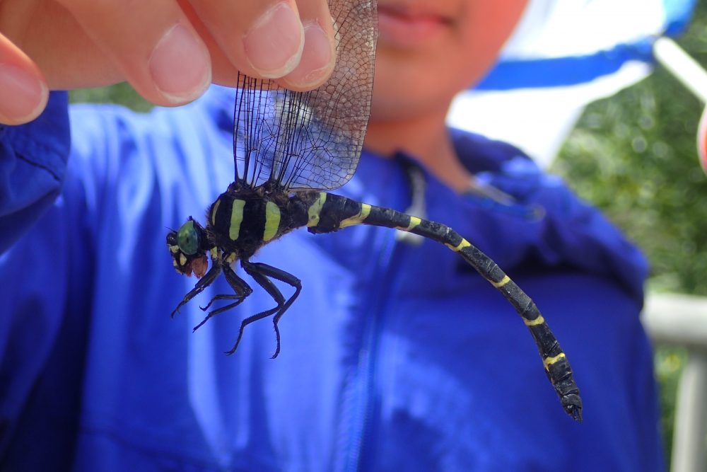 結局ギンヤンマの採集にはならなかったのですが、そんな中採集したトンボに皆が注目。