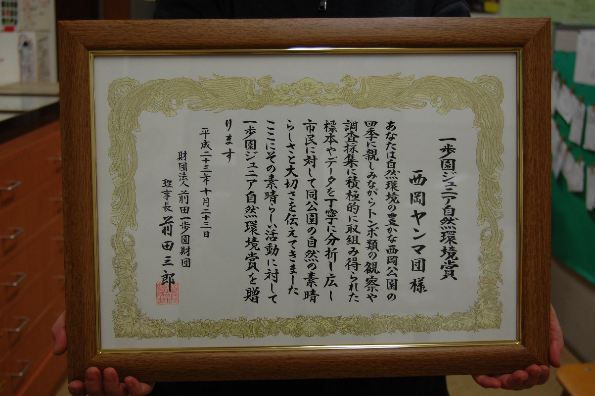 平成23年度前田一歩園ジュニア自然環境賞を受賞しました。