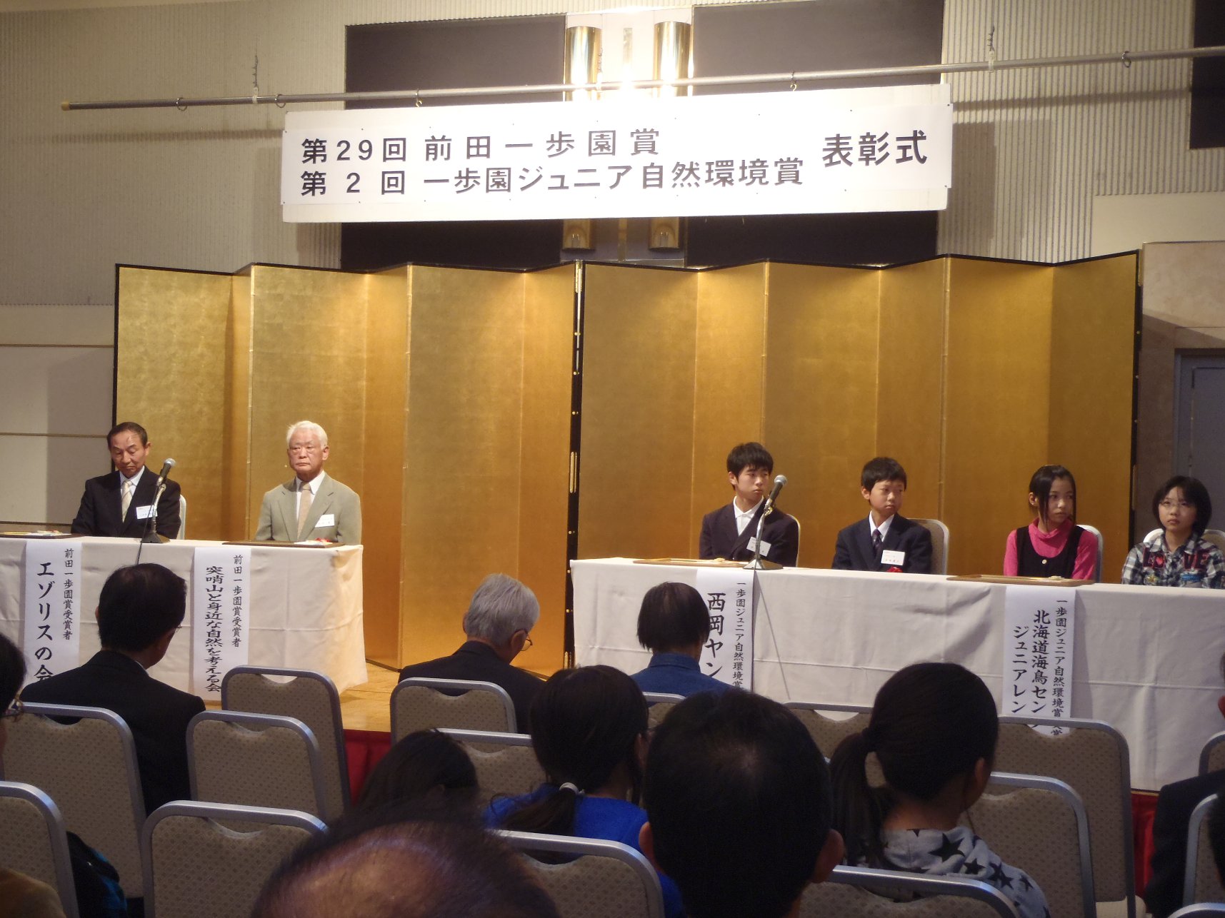 壇上には、他の受賞者とともに、ヤンマ団の中学生スタッフが上がりました。